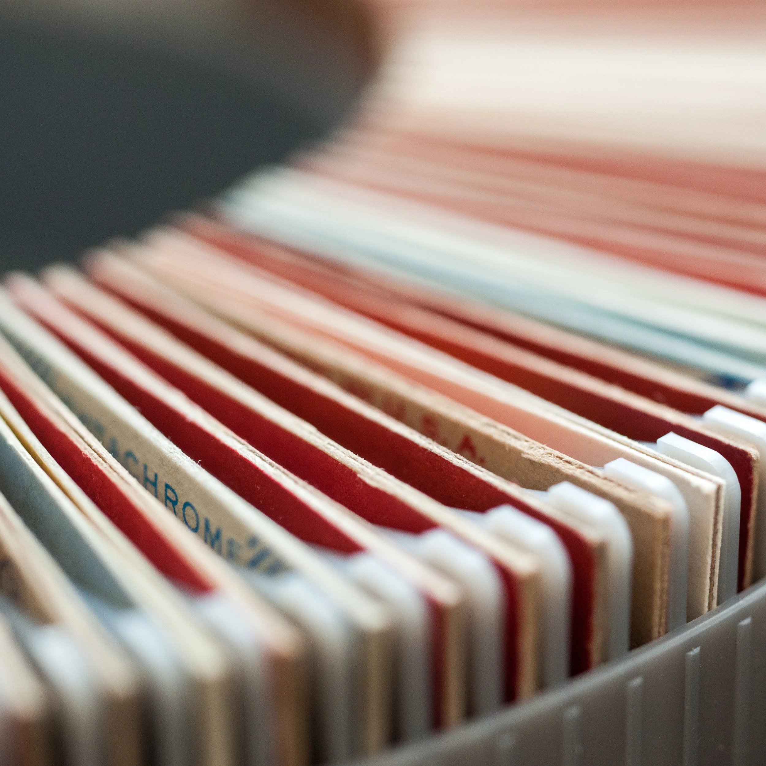 I personally keep my mounted slides and negatives in three ringed notebooks inside of archival pages. I find this to be an easy way to organize and preserve my film. Should you wish, the Film Preservation Project can organize and sleeve your slides and negatives for you in a similar manner. The cost of doing so can be calculated by request upon receiving your film.